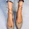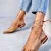 Tiered women’s ballerinas with an open heel. The model has a graceful cut with tapered nose and sensual binding that beautifully wraps around the ankle…. You can fall in love with these shoes embellished with sparkling zircons! Outer material ? fabric.
