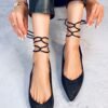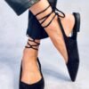 Tiered women’s ballerinas with an open heel. The model has a graceful cut with tapered nose and sensual binding that beautifully wraps around the ankle…. You can fall in love with these shoes embellished with sparkling zircons! Outer material ? fabric.
