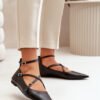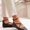 Women’s eco-leather ballerinas. Fastened around the ankle with an adjustable strap, which ensures a perfect fit to the foot. Set on a flat heel. Pointed toes will visually slim your legs. Soft insole provides comfort with every step. This model is distinguished by interlocking thin straps with a buckle. Extremely fashionable style that should be in your wardrobe!