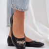 Women’s ballerina flats made of eco leather are a classic choice for everyday wear. The flat sole ensures comfort throughout the day, and the rounded toes give them a delicate, feminine look. The front of the shoes is decorated with a subtle decoration, which introduces an original and stylish element. These ballerina flats are the perfect option for both casual and more elegant stylings.