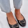 Women’s ballet flats made of eco leather are a classic choice for everyday wear, combining elegance and comfort. They have a flat sole, which ensures comfort throughout the day, and rounded toes add a subtle, feminine character to them. There is a delicate decoration at the front of the shoes, which gives them originality and a stylish accent. These ballet flats are a perfect choice for casual and more elegant stylizations.