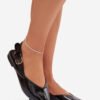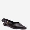 Women’s ballet flats made of eco leather. Slim, pointed toes give them lightness and emphasize feminine style, while the flat heel ensures comfort while walking. The stitching placed in the front adds subtle character, while the strap at the back with a decorative buckle serves both as an adjustment function and an eye-catching detail. This is a model that will complement both casual and more elegant stylings perfectly.
