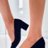Women’s suede pumps with a heel height of 6 cm. This is an exceptionally shapely model with comfortable, rounded noses – they are sure to captivate lovers of classic cuts…. Stable, low heel will make you love them even more, and the soft inner insole with a cushion will provide comfort on every step : ) Outer material ? ecological suede.