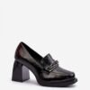 Leather pumps are the perfect choice for any woman who appreciates fashionable and comfortable footwear! This model is set on a delicate platform and a massive high heel in the form of a post. In addition, they have a stiffened heel counter. The front decorated with a strap and chain. A great model for many stylings!