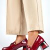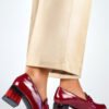 Elegant burgundy pumps made of patent leather, ideal for various occasions. Comfortable insole made of natural leather provides comfort all day long. The 5.5 cm high stiletto heel combines elegance with comfort, and the slip-on design makes it easy to put on and take off. The round toe gives a classic and timeless character, which goes well with a variety of styling, both everyday and more formal.