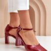Elegant pumps made of patent eco leather, perfect for any occasion. Set on a stable heel, they provide comfort and style throughout the day. The model features a square toe, giving them a modern character. Fastened with an adjustable buckle strap, they fit perfectly to the foot. A versatile choice that complements both elegant and casual outfits perfectly.