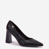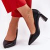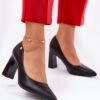 Elegant pumps with a column type heel. Made of eco leather. They have a soft insole made of natural leather, which guarantees comfort even during long wear. Pointed toes visually slim down the legs. This elegant model will certainly complement many stylizations!