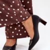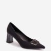 Women’s pumps made of eco leather, set on a stiletto heel, are an elegant proposal for various occasions. The decorative buckle at the front adds a unique character to them, and the pointed toes visually slim down the legs. Perfect for dresses, skirts or pants, these pumps combine style, comfort, and a modern look, creating a timeless classic in your wardrobe.