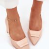 Women’s pumps made of eco leather, set on a column-shaped heel, combine elegance with comfort. Pointed toes slim the legs, and the decorative detail at the front adds subtle charm to them. The elegant cut makes them suitable for formal stylizations, perfectly matching dresses, skirts, or elegant trousers.