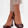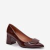 Women’s pumps made of eco-leather are a classic proposal that combines timeless elegance with comfort. The model set on a stable pillar heel ensures comfort throughout the day, and pointed toes visually elongate the legs, emphasizing the feminine character. There is a decorative detail at the front. These are perfect pumps for elegant stylizations, they will work great both at work and during special occasions, perfectly complementing dresses, skirts, and classic trousers.