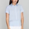 Solid-coloured blouse with a collar, formal cut. Half of the blouse is fastened with buttons. Blouse perfect both with skirt and trousers.