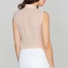Blouse in delicate fabric with a classic collar, fastened with press studs. Casual cut model with a round bottom, sleeveless. The front is decorated with an overlapping yoke. A perfect addition to work outfits and other occasions.