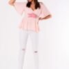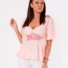 Airy blouse with a rose. Blouse has a deep neckline and loose sleeves.