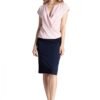 Elegant blouse with short, dropped sleeves. Loose-fitting cut with an envelope neckline. Model made of airy fabric.