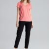 Short-sleeved blouse with a heart neckline. Shoulder-length topstitching with decorative pleats. Sleeves finished with a folded cuff. Sides with a slit at the bottom, finished with a semicircular topstitching.