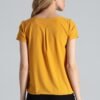 Short-sleeved blouse with a heart neckline. Shoulder-length topstitching with decorative pleats. Sleeves finished with a folded cuff. Sides with a slit at the bottom, finished with a semicircular topstitching.