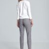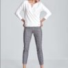 Elegant short blouse with an envelope neckline finished with a decorative piping, a lovely dropped shoulder, 3/4 length sleeves, bottom hem.