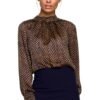 Elegant blouse made of chiffon with visible irregular stripes and dots print. It has a collar and a tie at the back which can be left loose or tied in a fine bow. Wear it with classic trousers or a skirt for a stunning style!
