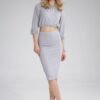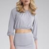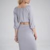 Short blouse with 3/4 sleeves, pleated neckline, sleeves and bottom, finished with sewn-in elastic band.