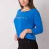 Dark blue women’s blouse with inscription, 3/4 sleeves.