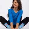 Blouse with 3/4 sleeves and a V neckline. Blouse finished with ribbed cuffs.