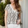 Short sleeve blouse worth having in your closet. Blouse made of patterned fabric, with a serek neckline, Blouse perfect for every day and more.