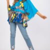 Blouse made of patterned material, and loose cut. Blouse with 3/4 sleeves and a belt.