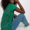 Straight cut blouse with short sleeves. Cheese neckline, extended back made of lace.