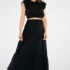 Short blouse tied at the back, made of airy viscose. A slit on the back and frills at the sleeves add charm. Looks phenomenal with our A431 skirt.
