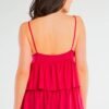 Loose-fitting viscose blouse with thin straps. The model uncovers a large part of the back and beautifully emphasizes the neckline. From the line under the bust with two frills. The product was made in Poland.