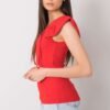 Blouse with short sleeves in a form of a frill made of ribbed fabric. Cheese neckline with decorative binding.