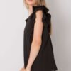 Blouse with short sleeves in the form of frills. Cut out at the back with decorative binding.