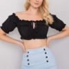 Short blouse with Spanish style neckline and short sleeves. Tie at the front.