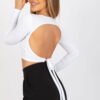 Short blouse of interesting cut with long sleeves. On the back the blouse has a cutout and binding.
