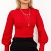 Blouse with long sleeves, made of ribbed fabric. Sleeves finished with wide ribbed cuffs.