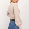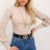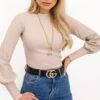 Blouse with long sleeves, made of ribbed fabric. Sleeves finished with wide ribbed cuffs.