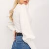 Blouse with long sleeves, made of ribbed fabric. Sleeves finished with wide ribbed cuffs.