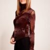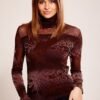 Blouse with long sleeves and turtleneck. Blouse made of fabric with a velvet pattern. Perfect for many occasions.