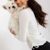 Short velour blouse with long sleeves and a round neckline. On the sides there are ties to adjust the length.