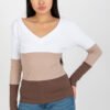 Blouse with long sleeves and a heart neckline. The blouse is made of ribbed fabric in three colors.