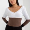 Blouse with long sleeves and a heart neckline. The blouse is made of ribbed fabric in three colors.