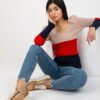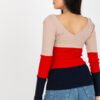 Blouse with long sleeves and a heart neckline. The blouse is made of ribbed fabric in three colors.