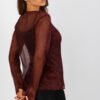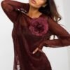 Two-piece blouse with long sleeves and a round neckline. On the front a decorative brooch in the shape of a flower. The bottom part in the form of a strapless shirt.