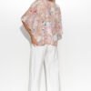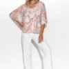 An airy women’s blouse with loose kimono-style sleeves. The bottom part is sewn from a solid fabric surrounding the body. The upper part is a mesh with a beautiful pattern appearing in as many as five variations: both animal, floral and abstract. Every fashion fan will find something for herself. The heart-shaped neckline optically lengthens the neck. The blouse provides a lot of freedom in the abdominal area. This is an ideal cut for women with an apple-type figure. Match the blouse with classic women’s pants and stilettos for a chic look at the office. You can also match the blouse with a tight skirt to emphasize your feminine silhouette.