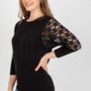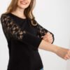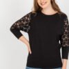 Straight cut blouse with 3/4 lace sleeves and round neckline.