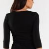 Crop top blouse. Blouse with 3/4 sleeves and a v-neck. The blouse can be tightened with drawstrings to uncover the belly. Designed and sewn in Poland.