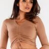 Crop top blouse. Blouse with 3/4 sleeves and a v-neck. The blouse can be tightened with drawstrings to uncover the belly. Designed and sewn in Poland.