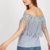 Summer blouse with a Spanish-style neckline. Blouse trimmed with decorative lace with tassels.