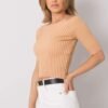 This beautiful white blouse is the perfect choice for everyday wear. Made of ribbed 100% acrylic material, it is easy to care for. The blouse has short sleeves and a boat neckline.