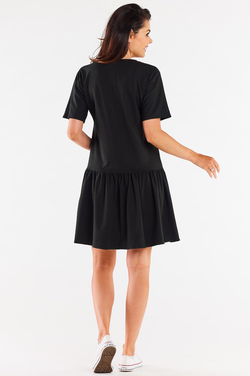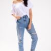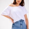 Loose T-shirt with a deep neckline. Boat neckline that can be pulled over one shoulder to create different styles. Product made in Poland.